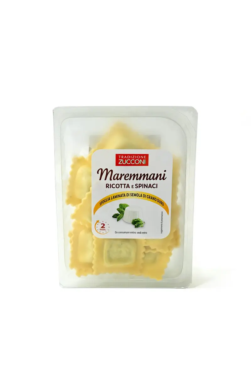 Dalla passione di un bambino per la pasta fatta in casa รจ nato un piccolo laboratorio artigianale, che piano piano si รจ posizionato sul mercato nazionale e poi internazionale. Gaetano Maccari oggi รจ lโamministratore delegato di questa azienda marchigiana ormai parte di Entroterra S.p.A., e assieme alla famiglia garantisce produzioni frutto di un ยซtriplo impasto lentoยป, lavorato cioรจ in tre fasi differenti, e di una filiera piรน che rispettabile nellโofferta di largo consumo: Parmigiano Reggiano Dop e vari ingredienti dei Monti Sibillini, adoperati senza lโaggiunta di aromi artificiali o glutammato. In tal caso, si osservano dei piccoli ravioli dalla forma quadrata, di un giallo piรน acceso che opaco, con uno spessore mediamente sottile. Conservano la loro impeccabile foggia geometrica pure dopo la cottura, pur perdendo la tonalitร paglierina iniziale. Il naso resta complesso, piรน articolato e speziato di altri: note di agrumi e noce moscata, seguite da quelle di formaggio, uova e spinaci. Un simile ventaglio aromatico si ritrova alla bocca con ancora piรน ordine e vivacitร . Forse, il ripieno risulta piรน asciutto del previsto, ma la sfoglia mostra certamente una buona consistenza.