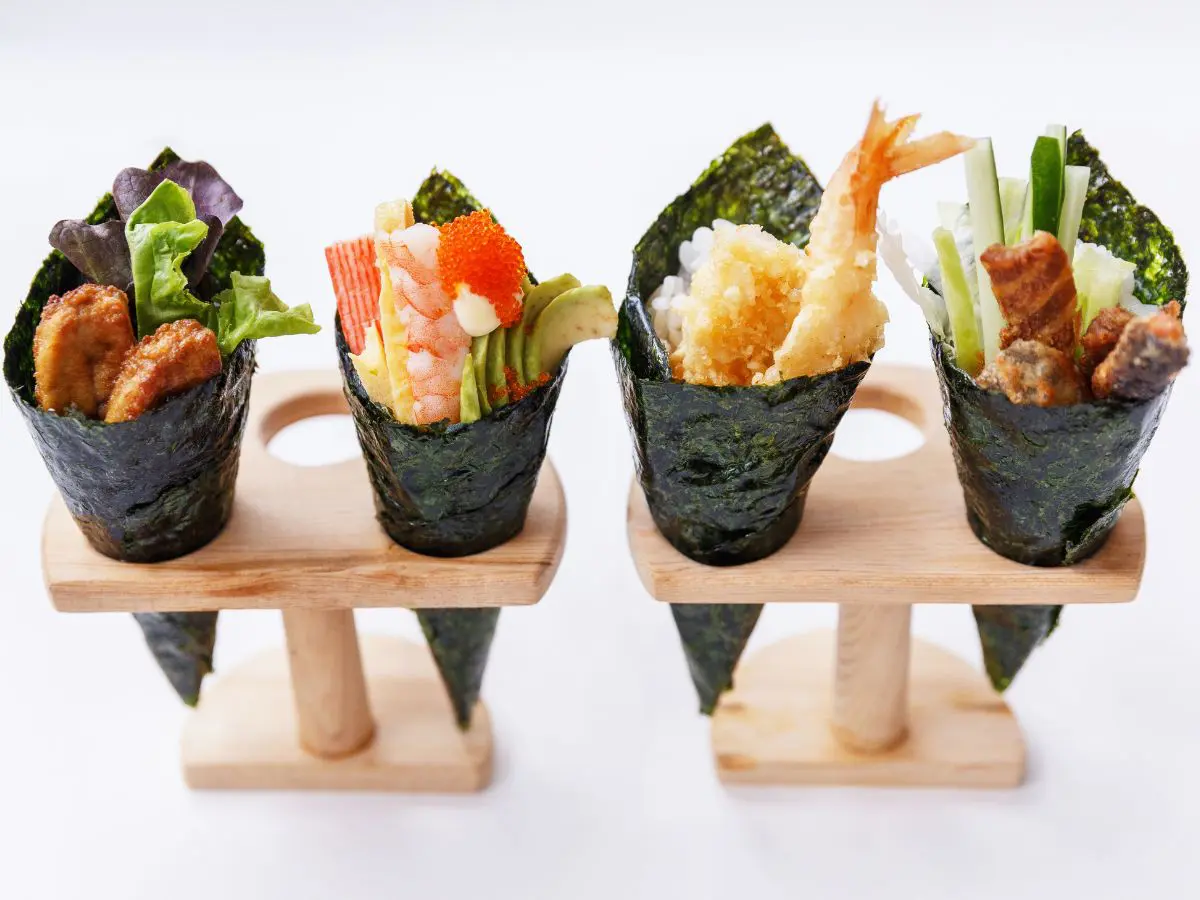 Il temaki con tempura di gamberi, spesso chiamato Ebiten, รจ particolarmente popolare, perchรฉ unisce la croccantezza della frittura al gusto morbido del riso e alla freschezza del nori. Non mancano poi versioni vegan o fusion, che reinterpretano il formato in chiave contemporanea, mescolando ingredienti giapponesi e occidentali.