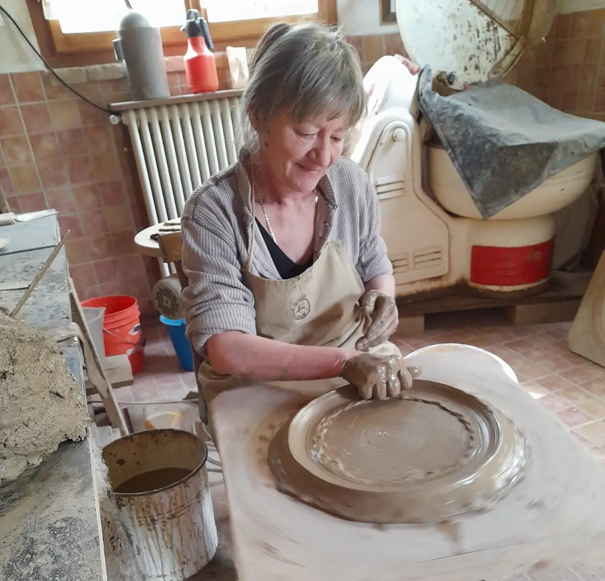 Proprio da Santarcagelo dove abitavamo, e dove lavorano rispettivamente come impiegato in un sindacato agricolo e in un supermercato, si sono mossi Maurizio e Rosella. Hanno risalito l’argillosa valle del torrente Uso fino a Montetiffi, che è sempre stato noto come il paese dei tegliai. «Era il 1998, sapevo di un cugino di mia madre che costruiva le teglie, era rimasto solo lui – racconta Rosella -. Ci ha insegnato tutto: dove prendere le terre, come plasmarle e cuocerle. Ci ha tenuto le mani e noi abbiamo deciso di smettere di correre su e giù per la via Emilia e ci siamo trasferiti lì per diventare tegliai».