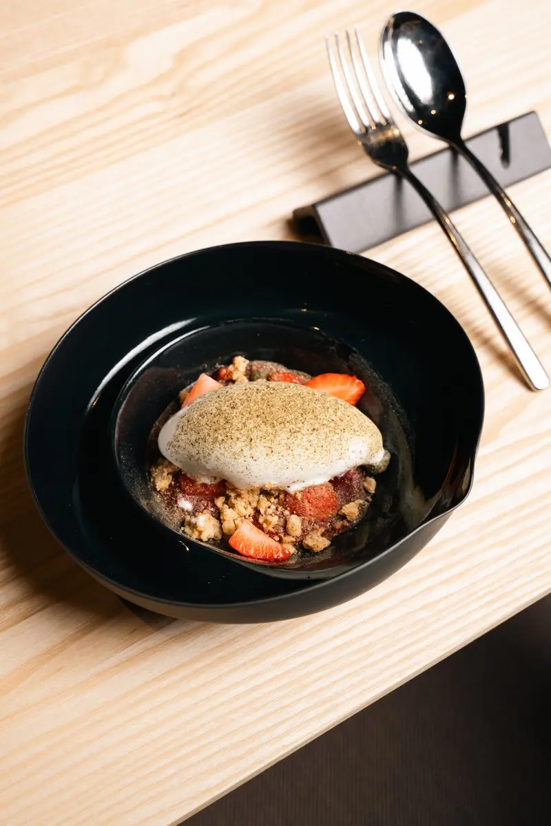 Composta di frutti di bosco, gelato di yogurt e capperi