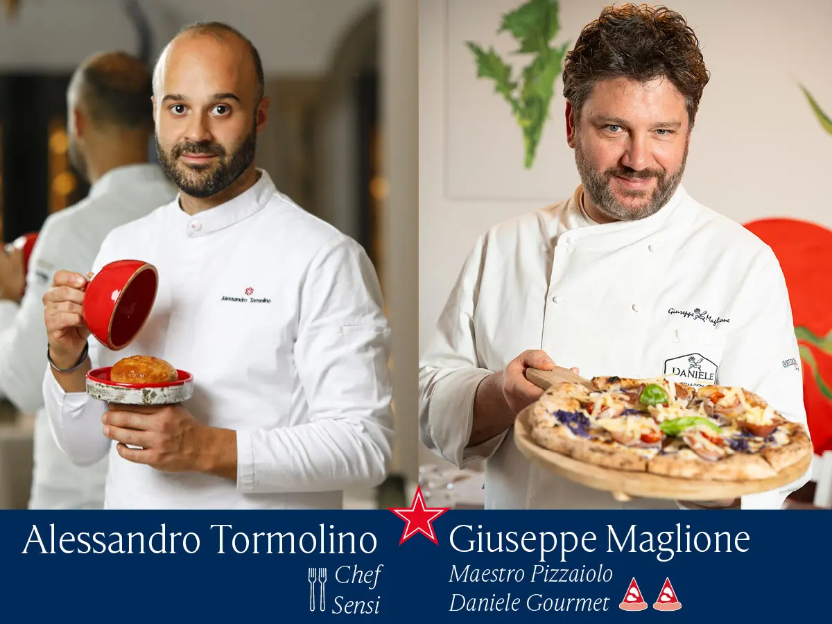 La quarta cena degustazione di โThe Sanpellegrino Tableโ, in programmaย fino a tutto novembre, รจ prevista il 16 ottobre 2025 ore 20 presso Daniele Gourmet di Avellino. Protagonisti il maestro pizzaiolo Giuseppe Maglione (della pizzeria sede dell’evento, Due Spicchi del Gambero Rosso) e lo chef Alessandro Tormolino (del ristorante Sensi di Amalfi, stella Michelin e Due Forchette del Gambero Rosso) che proporranno un menu degustazione a quattro mani a base di pizze d’autore.